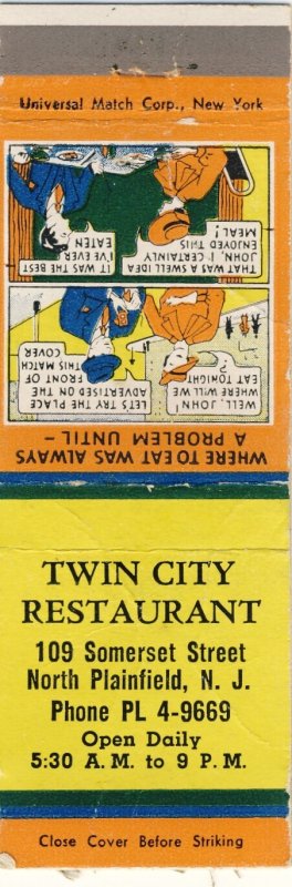 North Plainfield, New Jersey/NJ Match Cover,Twin City Restaurant