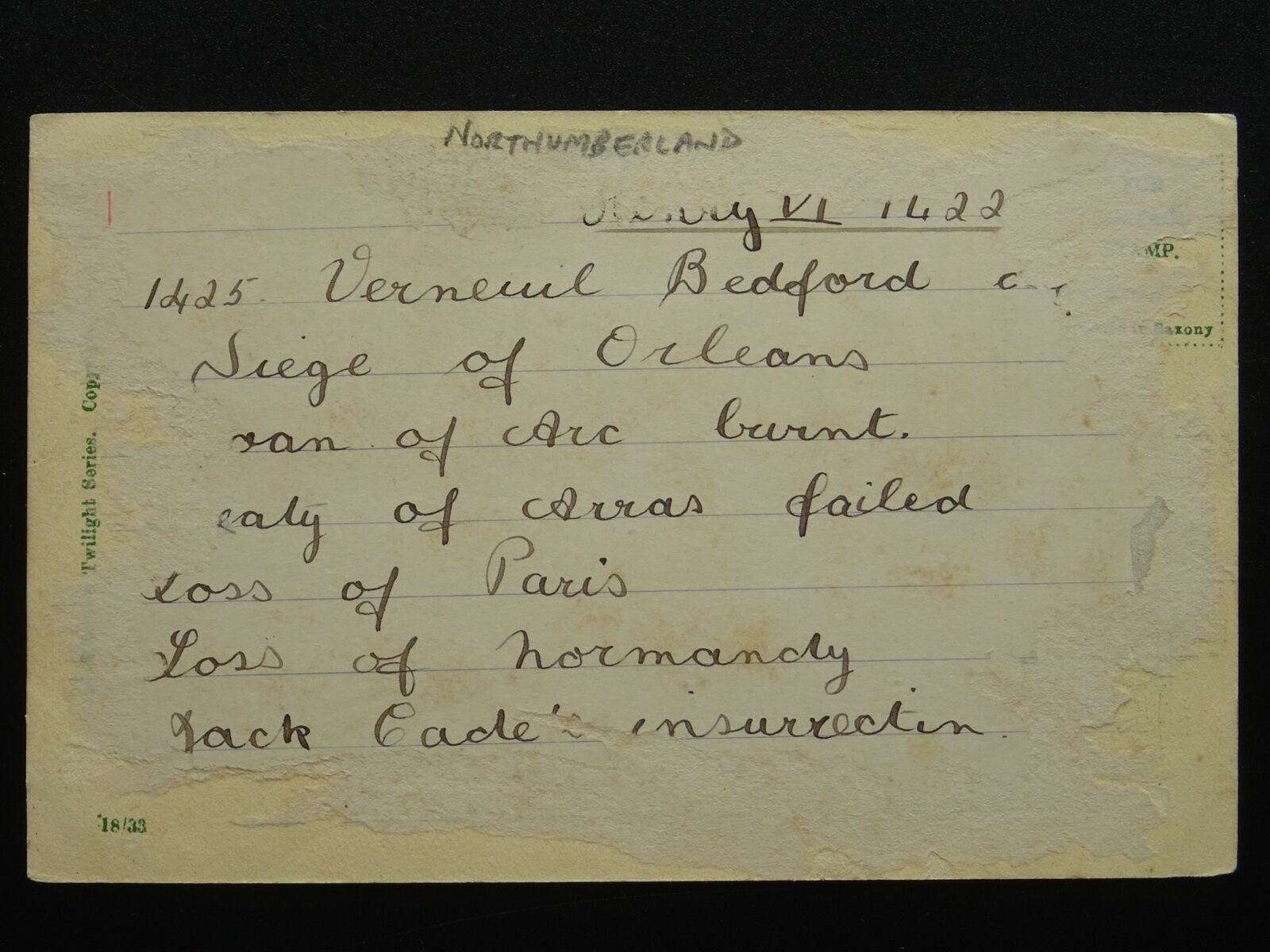 Northumberland ALNWICK Hotspur Tower - Old Postcard Northumberland ALNWICK Hotspur Tower - Old Postcard Postcard Details Additional Information - Postcard Condition (G) - Good / notes adhered to reversePostally used - not stampedPostcard Details - Please see detail on the photographic image or contact us for details. Abbreviations: (UB) Undivided Back / (RP) Real Photograph Postcard / (PM) Postmark Interest / (CDS) Cancellation Date Stamp / (SQC) Squared Circle / (DP) Duplex PostmarkPTP Reference - 131020 Postcards WelcomeWelcome to our store. At Past Time Postcards we stock a comprehensive range of British antique and vintage topographical postcards, cigarette cards, rare antique prints and other antique collectables.We aim to make your shopping experience enjoyable and stress free. We list our postcards topographically and by subject matter to make it easier for you to locate the items that interest you. Feel free to browse and explore at your leisure, however if you require assistance locating items or have a specific request please don't hesitate to contact us.Combined Postage We will always combine postage when you purchase multiple items. Please make your multiple purchases by using your Hip BASKET where postage will be combined automatically.Postage & PackagingPostage rates are calculated to include postage and packaging. All Full Sets of Cigarette or Trade Cards are posted 1st Class and protected with a plastic sleeves in a BOARD BACKED ENVELOPE & FULL SET HAVE ADDED STIFFNER BOARD for added security and protection. Payment MethodsOur preferred method of payment is through PayPal for all purchases.UK CUSTOMERS can make payment by PayPal, Personal Cheque or Postal Order. PLEASE NOTE: Credit cards included in PayPal payment method Inc. Visa, MasterCard, American Express, Discover. FOR CUSTOMERS OUTSIDE THE UK: we can only accept PayPal as method of payment100% SatisfactionIf in the unlikely event you are unhappy with your item you have purchased on the basis that the postcard was incorrectly described or graded we do offer a complete refund less the cost of postage and packaging once the item is returned to us.Condition & Grading Information(M) Mint – Like new, almost perfect(EX) Excellent – No obvious flaws, sharp corners, clean and if postally used the writing does not detract from appearance.(VG) Very Good - Minor defects such as album marks, signs of age and handling is acceptable that do not detract from appearance.(G) Good – Noticeable defects, handling and wear apparent. Minor creasing or minor postal damage not detrimental to image.(F) Fair – Obvious creasing, staining, small tears or damp damage evident. Significant edge or corner damage.(P) Poor – Incomplete or image seriously affectedFinally if you have any specific requests or questions we are always very pleased to offer support and assist you with your collecting needs.Kind regardsMark - Past Time Postcards Listing and template services provided by inkFrog