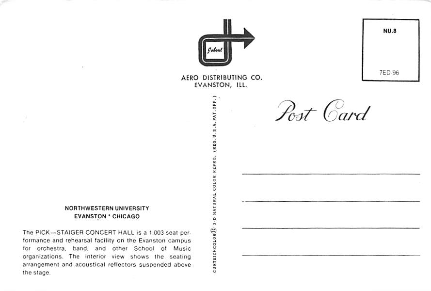 Northwestern University - Evanston, Illinois Continental Size Postcard, Approx 4 in x 6 in (10 cm x 15.25 cm) Continental Size: 4X6 inches (10.5 cm x 15 cm)
