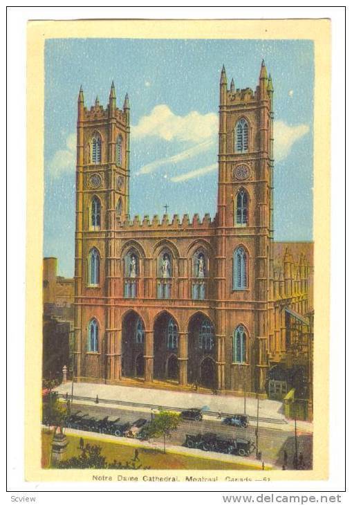 Notre Dame Cathedral, Montreal, Quebec, Canada, PU-1944 :: Postcard, 3.3 by 5.5", Litho, EX, WOB