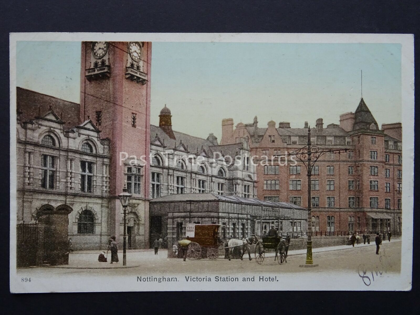 Nottingham VICTORIA STATION AND HOTEL c1904 Postcard