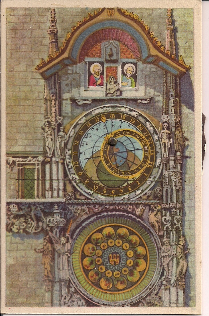 NOVELTY PC Mechanical Clock, Prague, Czech Rep., Astrology, Movable 1920's?
