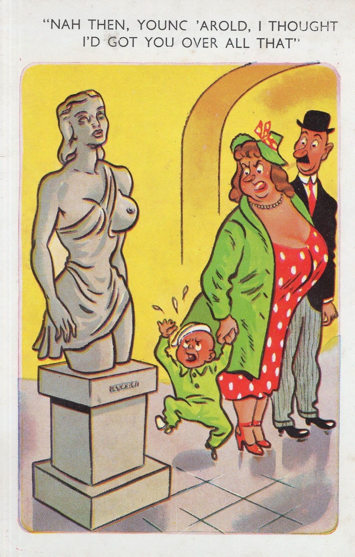 zx196 An undated but vintage comic postcard circa 60 years ago origin - Vintage art gallery humour which you will never find in a newsagents today unused and bar small corner edge reverse darkening area (just small to reverse) is otherwise mint condition unused too.