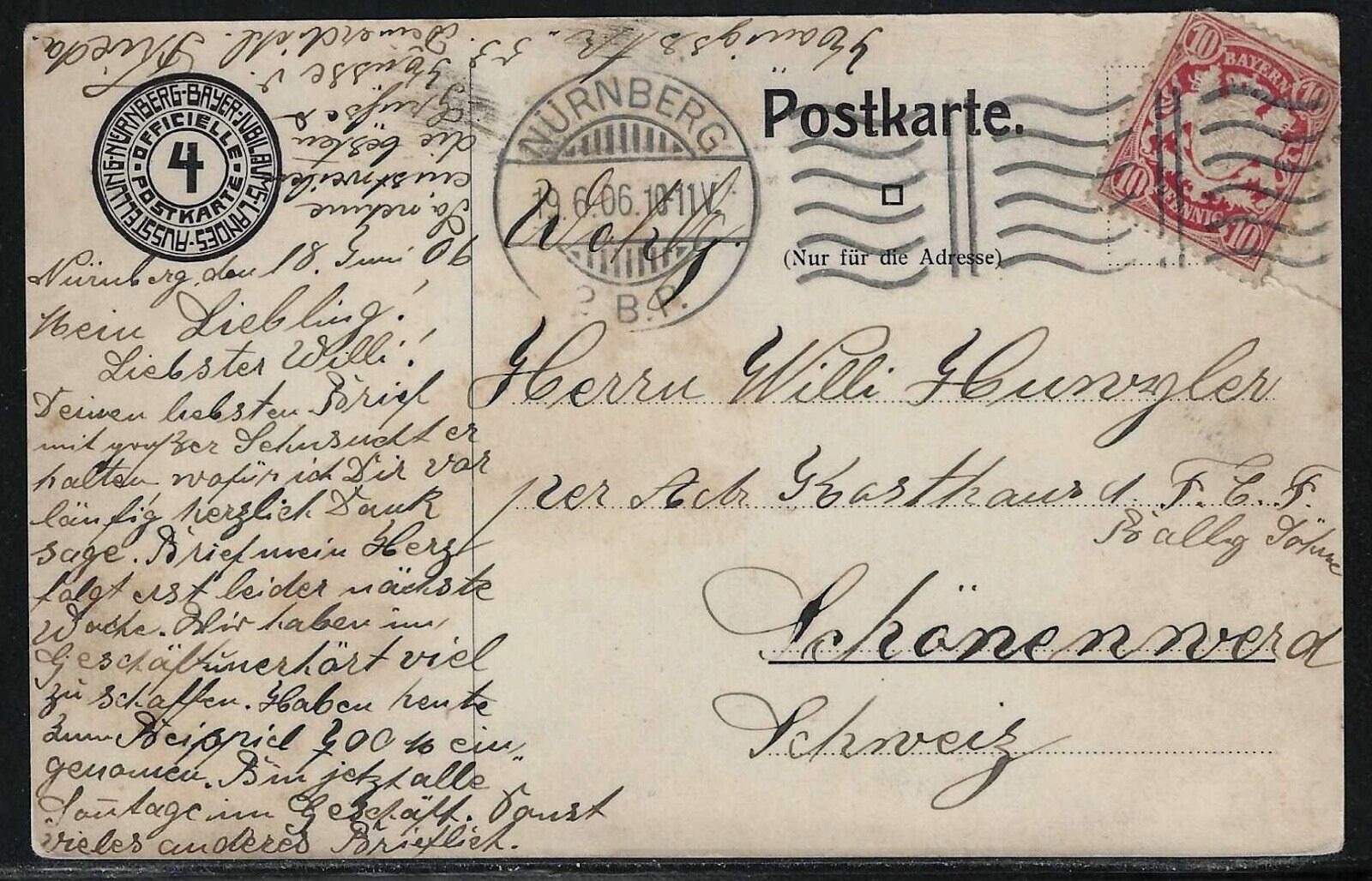 Nuremberg, 1906 Exhibition, Bavaria, Official Postcard, Used