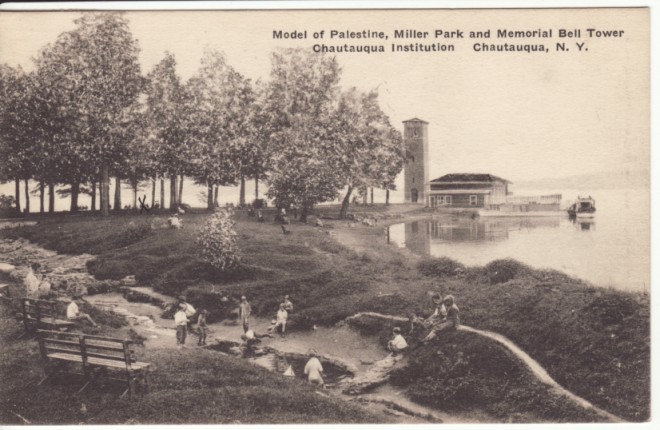 NY CHAUTAUQUA 1934 postcard TOWER, PARK, PALESTINE
