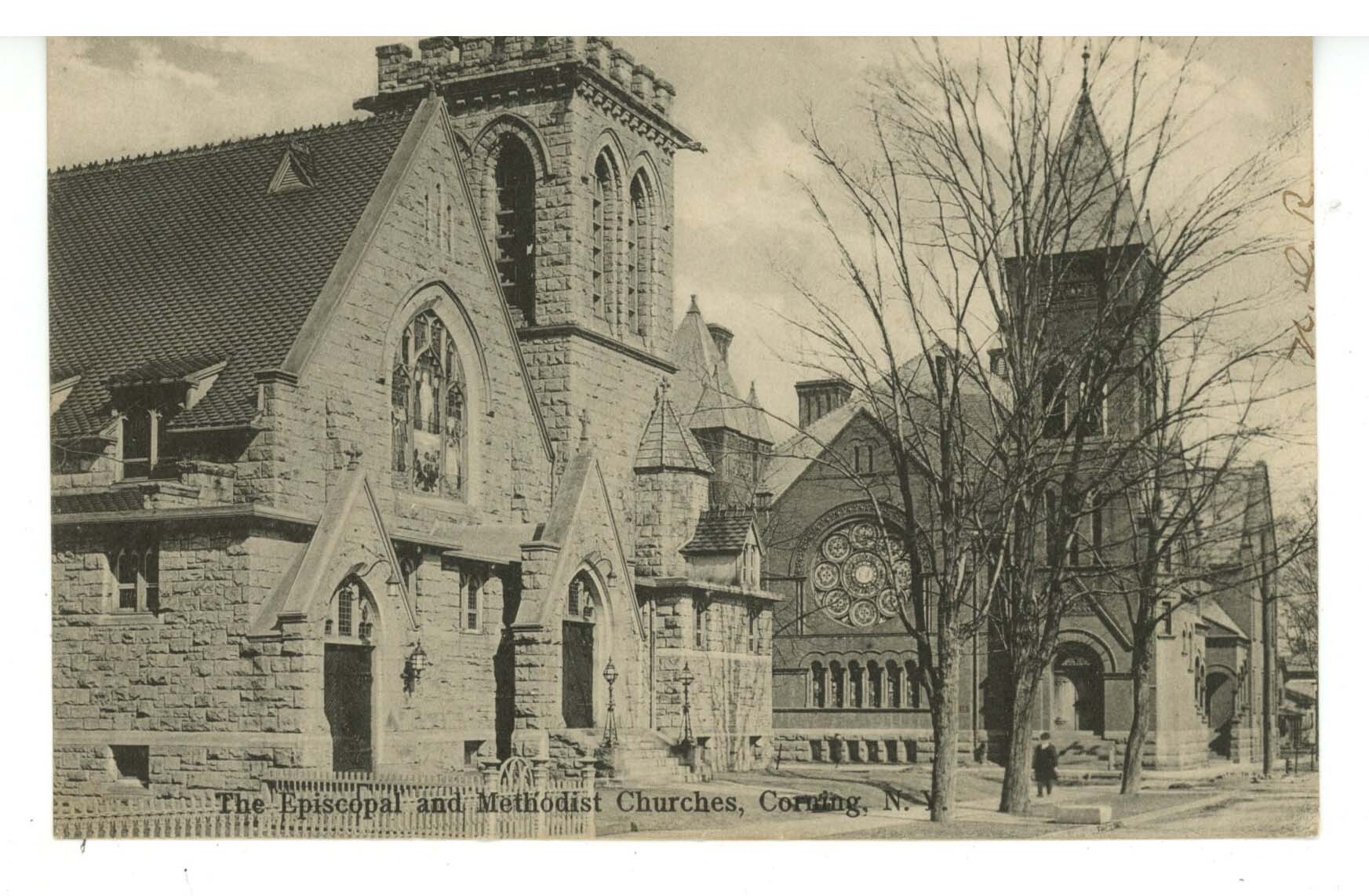 NY - Corning. Episcopal & Methodist Churches ca 1906