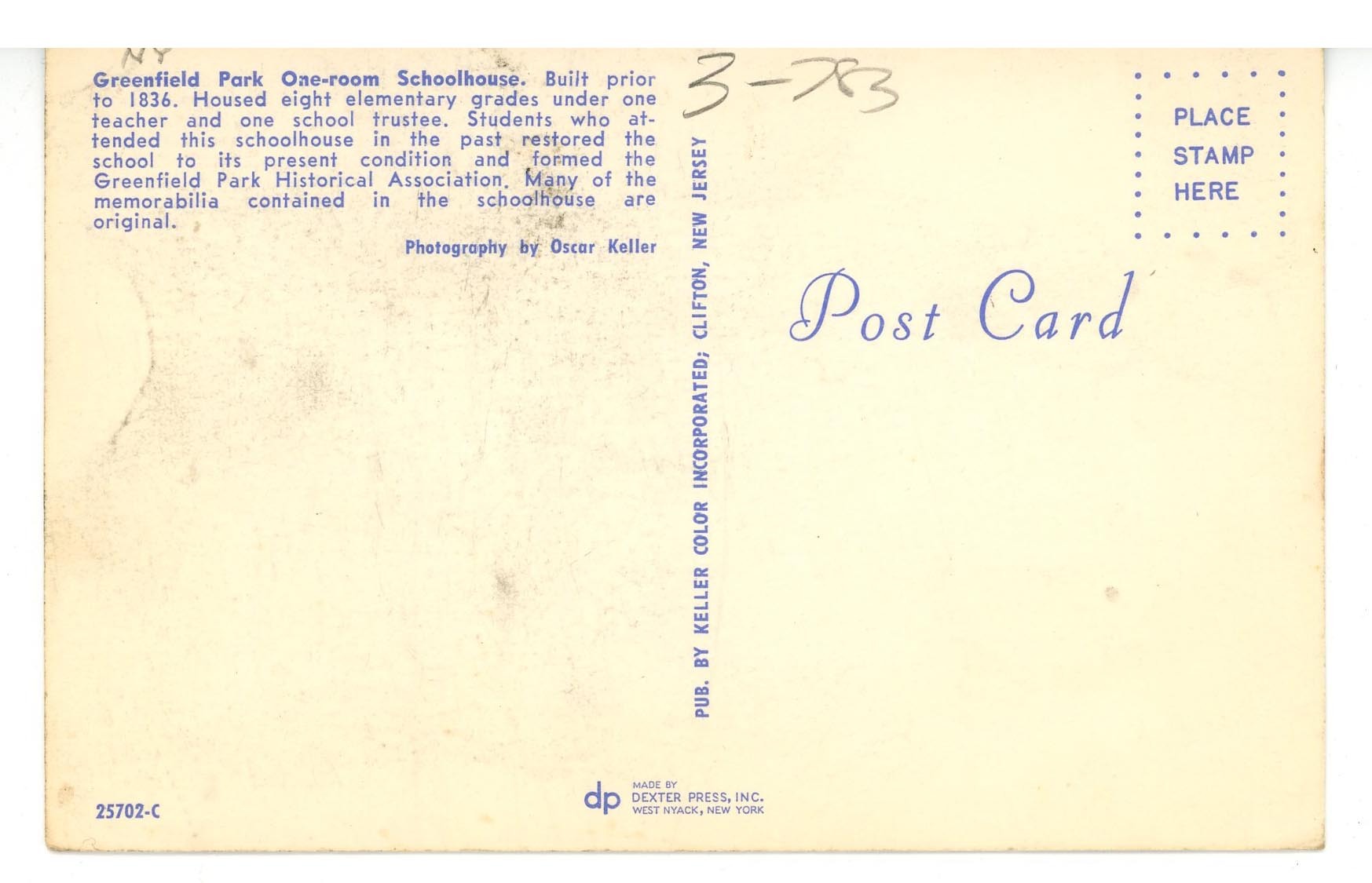NY - Greenfield Park. One-Room Schoolhouse Interior
