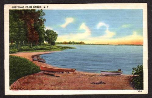 * Type: * Postcard * United States Location: * New York NY Greetings from BERLIN NEW YORK PC Linen Postcard Lot Details This is a Standard sized post card ( 3 1/2" by 5 1/2") with corner and edge wear & a sma ... Read More