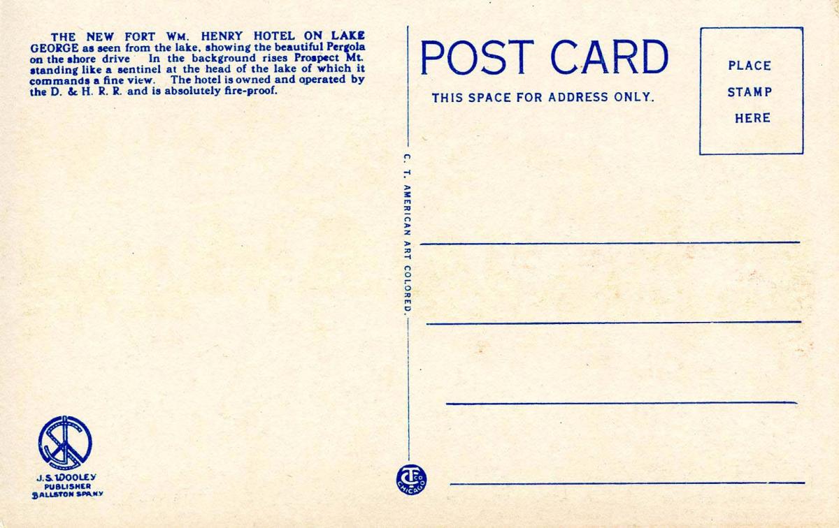 NY - Lake George. Fort William Henry Hotel Grading of Postcards MINT (M): Perfect condition, no apparent blemishes, flaws, postally unused, may have some writing on back. NEAR MINT (NM): Like new, image is uncompr ... Read More