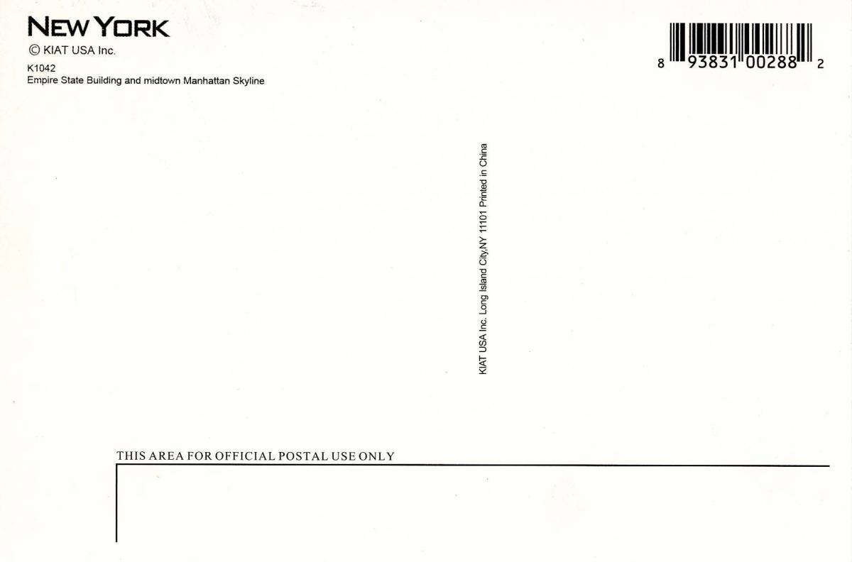 NY - New York City Skyline Grading of Postcards MINT (M): Perfect condition, no apparent blemishes, flaws, postally unused, may have some writing on back. NEAR MINT (NM): Like new, image is uncompromised, may have ... Read More