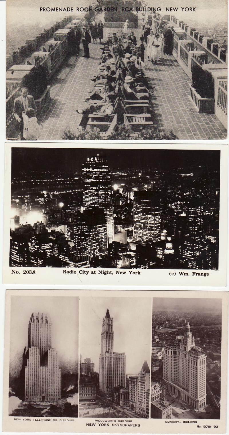 NY NYC 3 POSTCARDS including 2 RPPC photo postcard