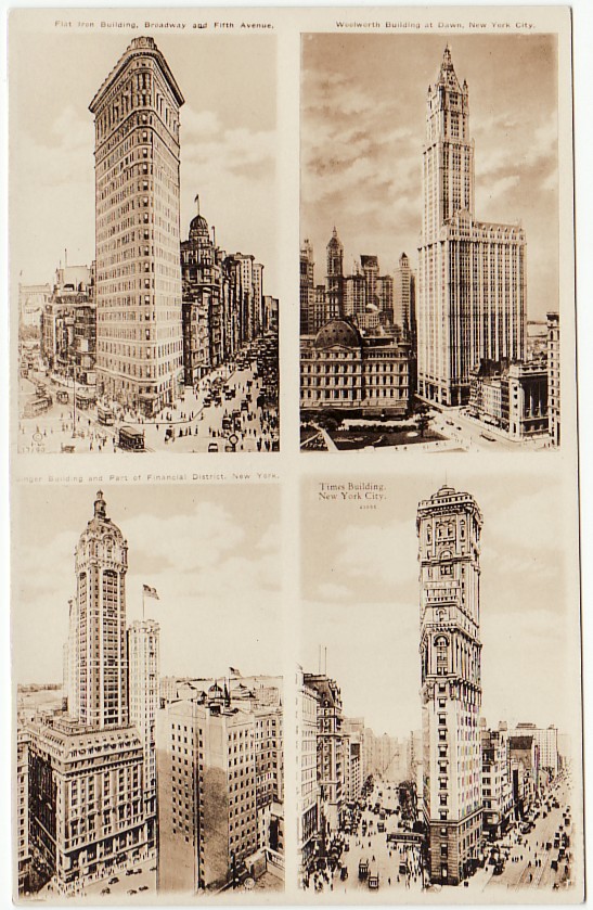 NY NYC 4 BUILDINGS incl FLATIRON RPPC postcard