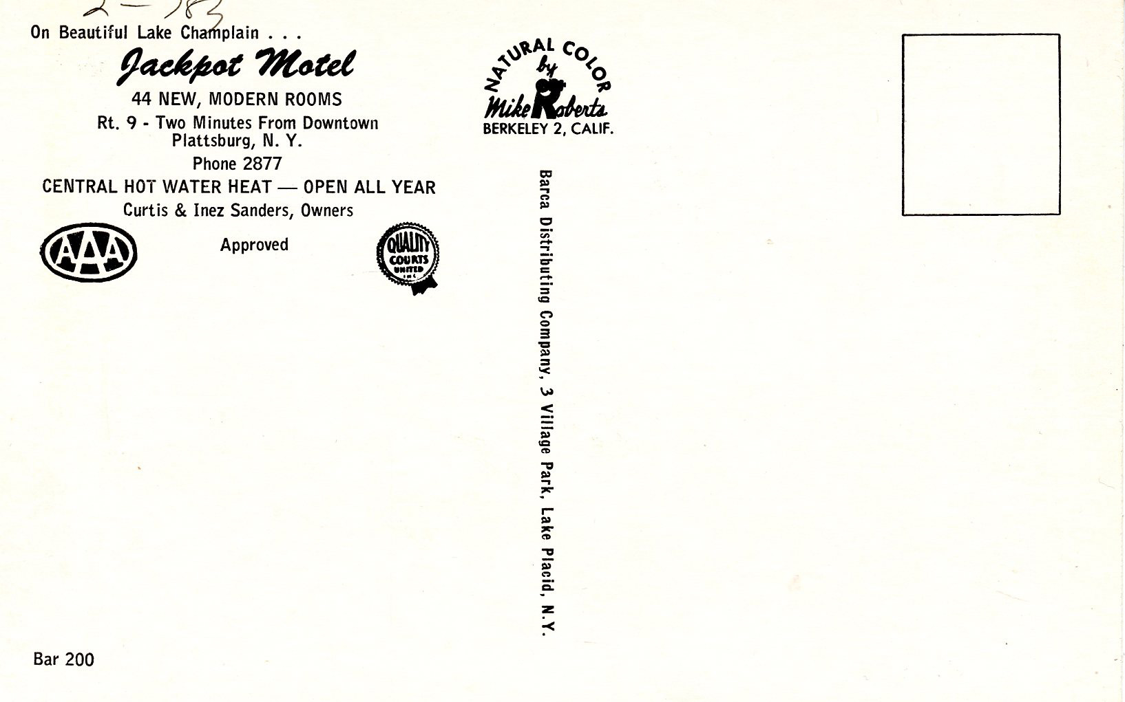 NY - Plattsburg. Jackpot Motel