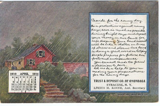 NY SYRACUSE BANK CALENDAR 1910 postcard
