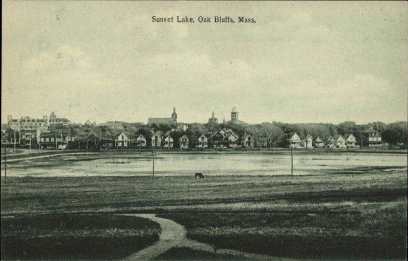 Oak Bluffs Martha's Vineyard MA Sunset Lake c1910 Postcard
