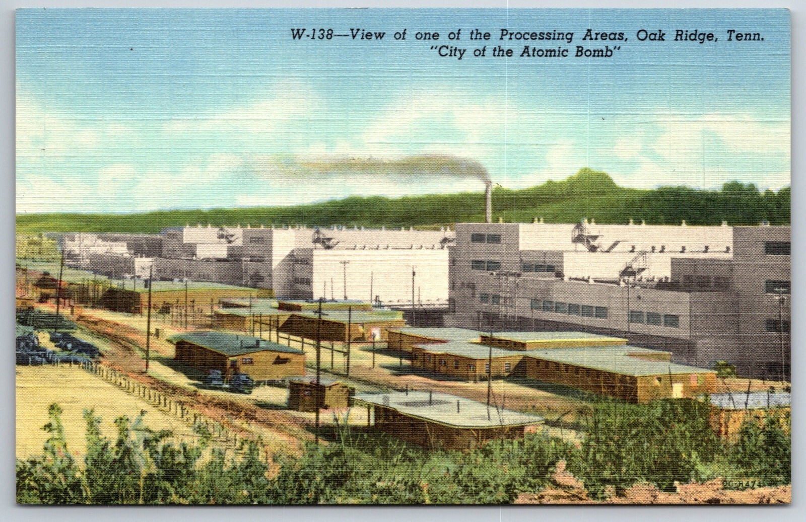 Oak Ridge Tennessee~Atomic Bomb City~Processing Area Smokestack~1951 Linen