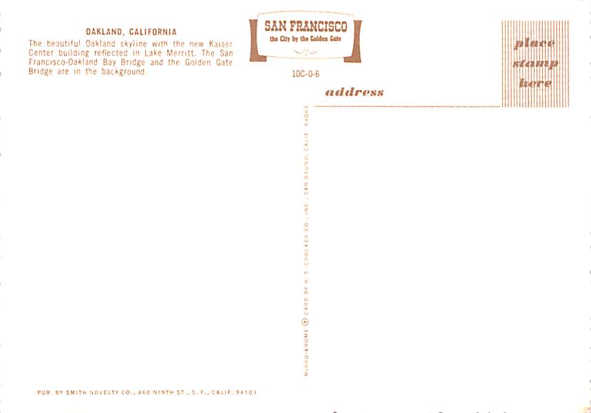 Oakland - California Grade: 3 Category: Continental Size Postcard, Approx 4 in x 6 in (10 cm x 15.25 cm) Product Size: Continental size: 4X6 inches (10.5 cm x 15 cm) Grading Scale: Grade 1 = Perfect corners Gra ... Read More