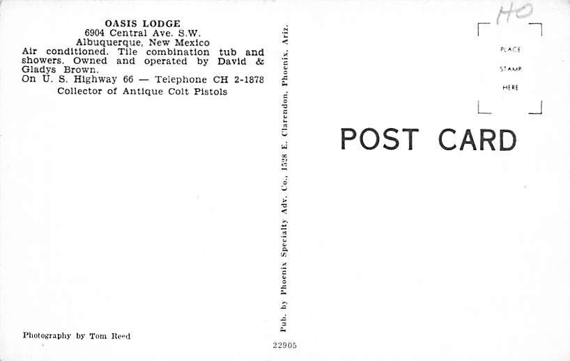 Oasis Lodge Albuquerque, New Mexico NM Postcard - Unused Grade: 1 Size: R - Regular Size Postcard - approximately 3 1/2 inch x 5 1/2 inch (9 CM x 14 CM) Grading Scale: Grade 1 = Perfect corners Grade 2 = Very M ... Read More