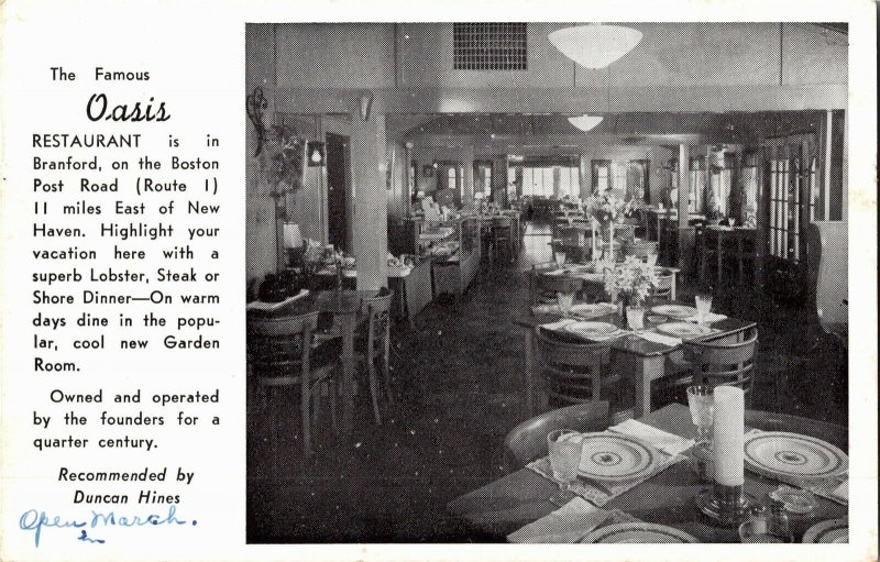 Oasis Restaurant Branford CT Dining Room c1952 Vintage Postcard R26