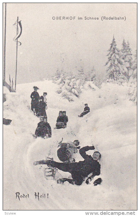 Oberhof im Schnee (Rodelbahn), Schmalkalden-Meiningen , Thuringia, Germany , 00-10s :: Postcard , 3.5 by 5.5 , Litho , EX