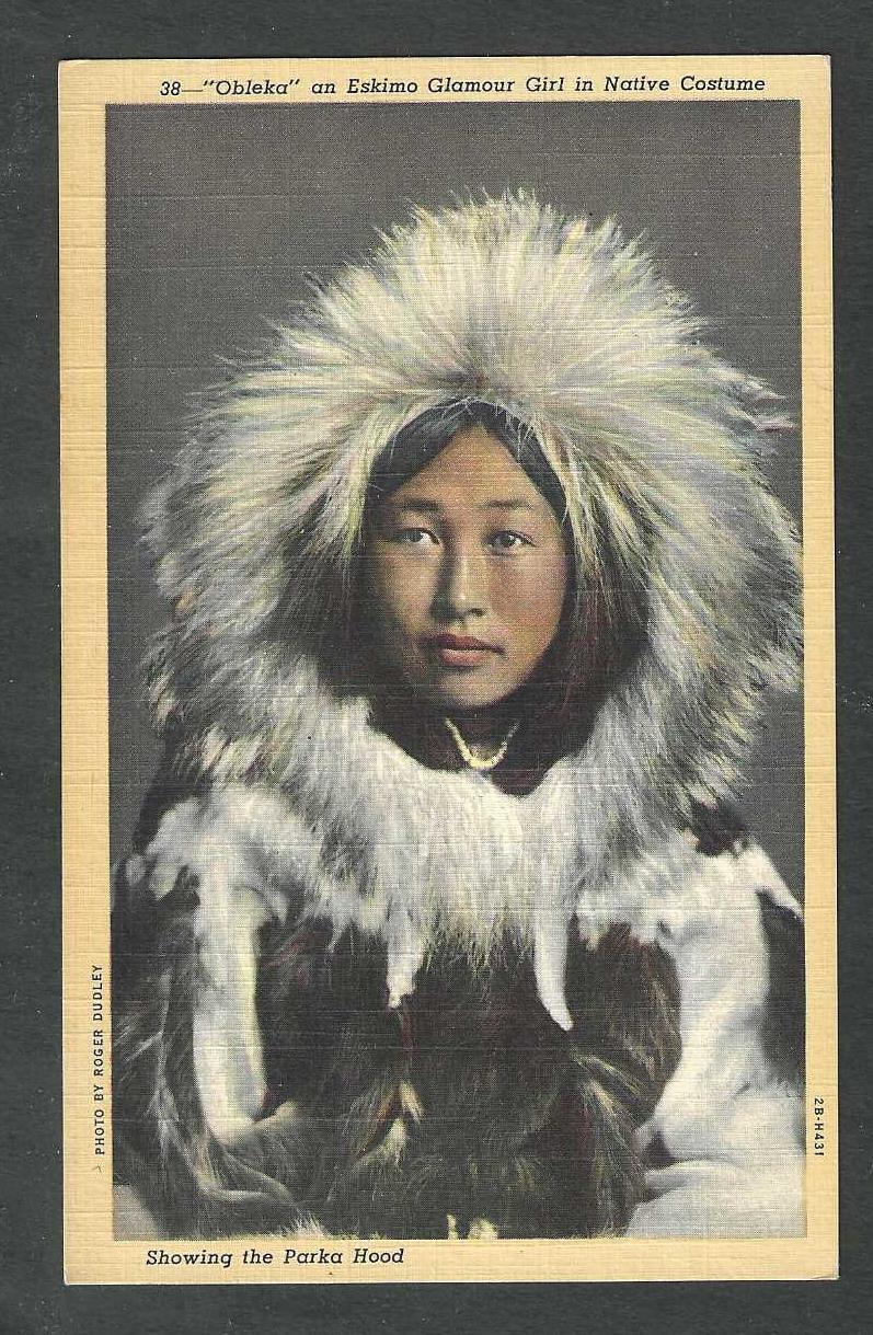 "Obleka" an Eskimo Glamour Girl in Native Costume Showing the Parka HoodSeller Information