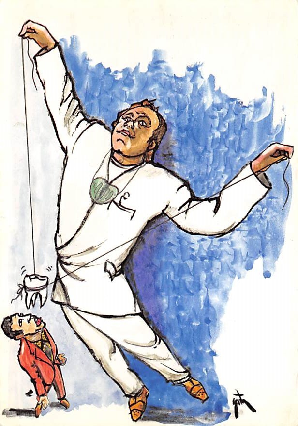 Man Pulling a Tooth Comic Occupation, Dentist Postcard