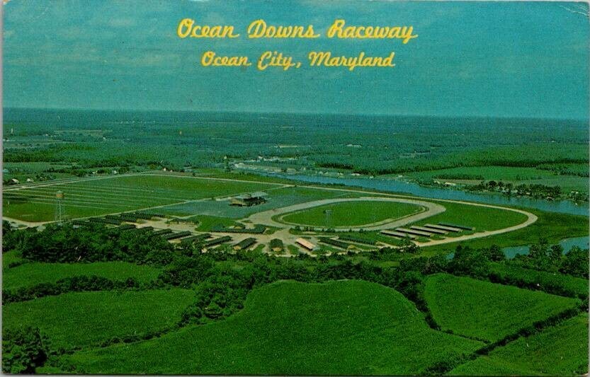 Ocean City, Berlin Maryland Ocean Downs Raceway Postcard -- Pre Barcode & Zipcode Postcard- Sku: T-723***Condition: see scans - some age tanning on back ... typical from age and storagePlease review images for condition. Vintage postcards often have corner bumps and edge wear.We also offer combined shipping.