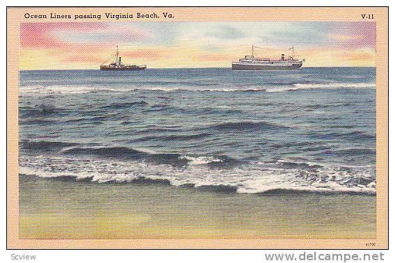 Ocean Liners passing Virginia Beach, Virginia, 30-40s