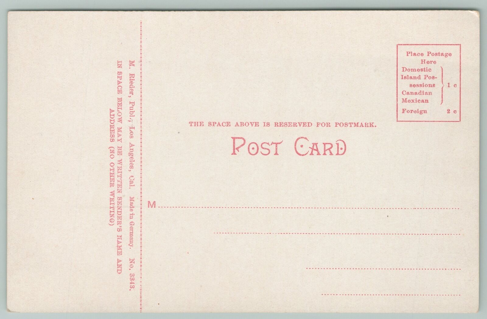 Using the photo magnifier, please examine photos carefully, both front and back, for flaws. The back will sometimes reveal nicks or bends that you cannot see from the front. Double-click the image for super size photo. Colored lines are from the scanner and are not on the postcard