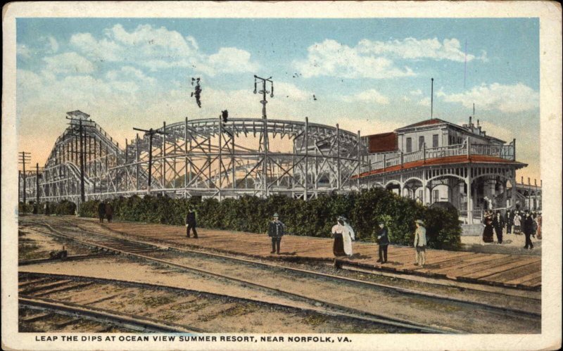Ocean View Near Norfolk VA Roller Coaster c1920 Postcard