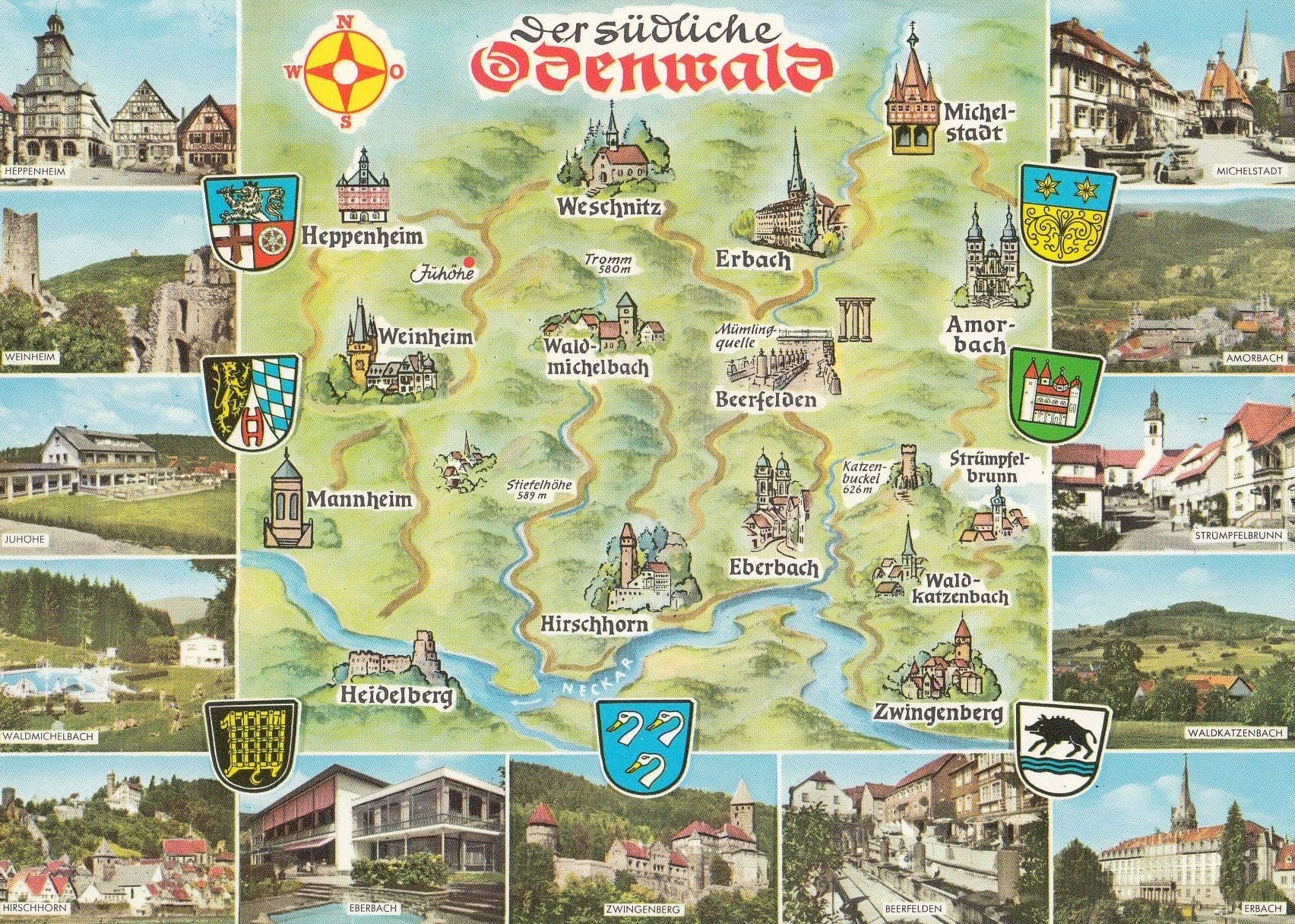 880 This is an undated but would seem circa 40 years ago origin postcard of Odenwald unused bar slight corner fraying this is outstanding condition with miniature pictures highlighting the main areas of the region so specialist local postcard.