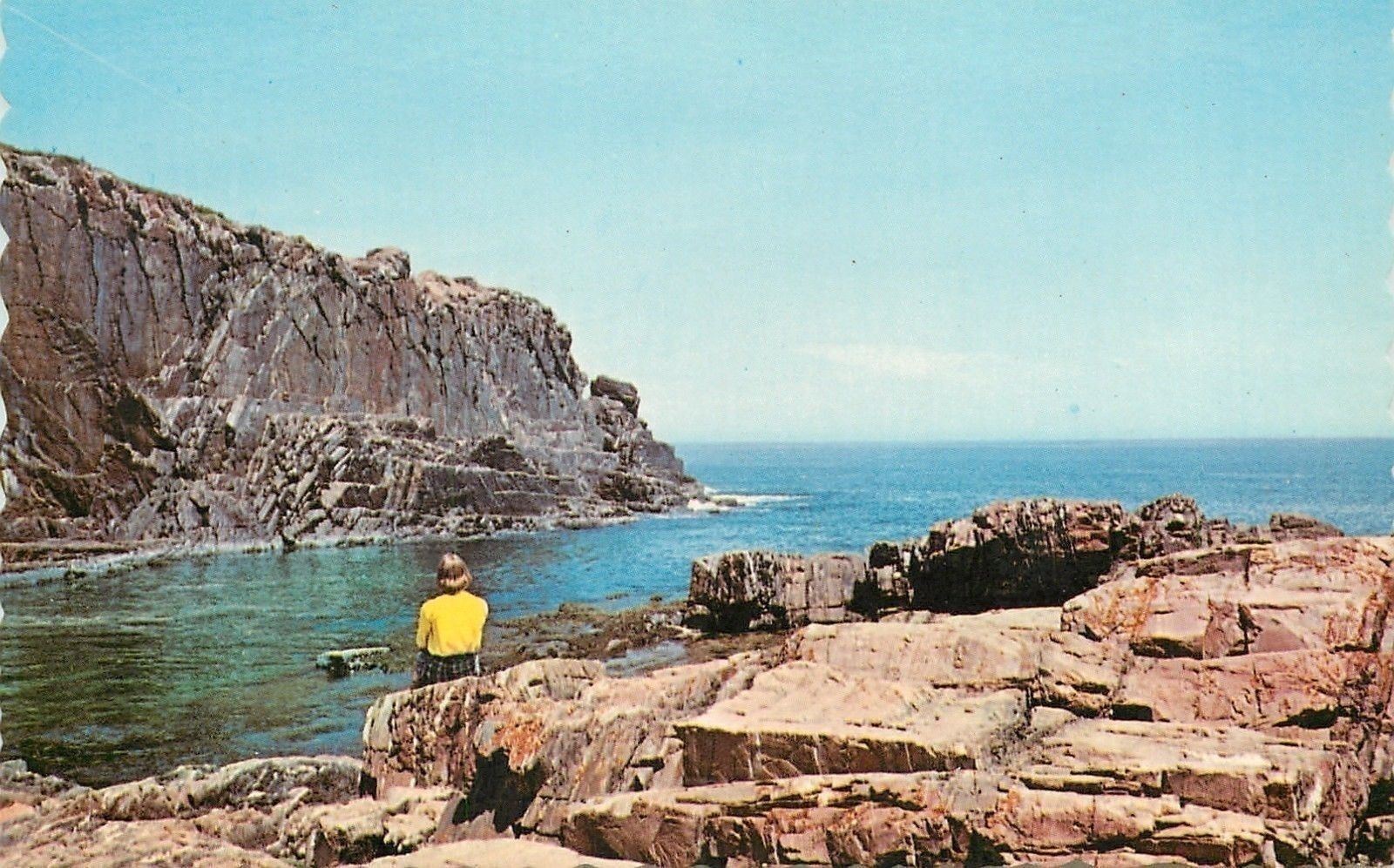 Ogunquit Maine~Bald Head Cliff~Lady on the Rock~1950s Postcard
