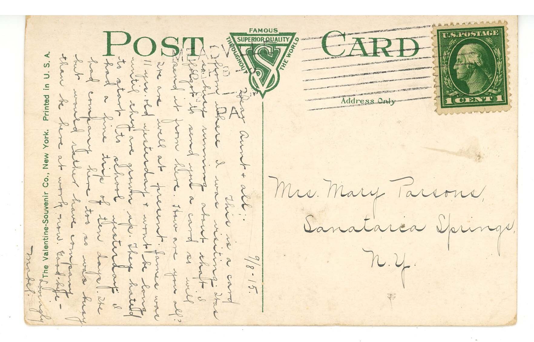 Please use the Hip Photo Magnifier (the zoom feature) to examine all images for condition and details before purchasing. Postcards, Folders, Ephemera are all sold with sleeves. Message us if you have specific questions about an item. Attic Heritage Auctions (AHA) generally ships orders within 24 to 48 hours of receipt. Shipping delays with the U. S. Postal Service are common. Unfortunately, we have no control once your order is shipped. In some areas shipping times have resulted in orders being delivered as much as several weeks after mailing. Please be assured that we at Attic Heritage Auctions (AHA) are still shipping every order expediently and shall continue to do so.Seller Information