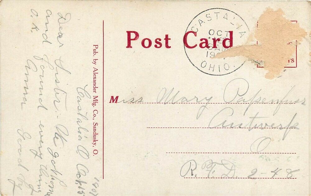 Early Printed Postcard Cedar Point, Ohio, Castle Publisher/Printer: Alexander MFG Co. Postmark: can not read dated 1907 in note Image: Nice and clean Corners: wear Faults/Other: Minor edge wear, stamp tor ... Read More
