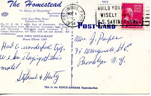 OH - Columbus, The Homestead E, PU, DB, WOB, C, PM 1954 Grading of Postcards MINT (M): Perfect condition, no apparent blemishes, flaws, postally unused, may have some writing on back. NEAR MINT (NM): Like new, im ... Read More