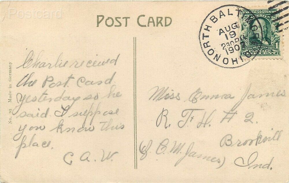 Printed Postcard North Baltimore, Ohio, Water Works Postmark: None Image: Nice with light imprint from back top right Corners: Light wear, wear bottom left Faults/Other: Small crease bottom right corner