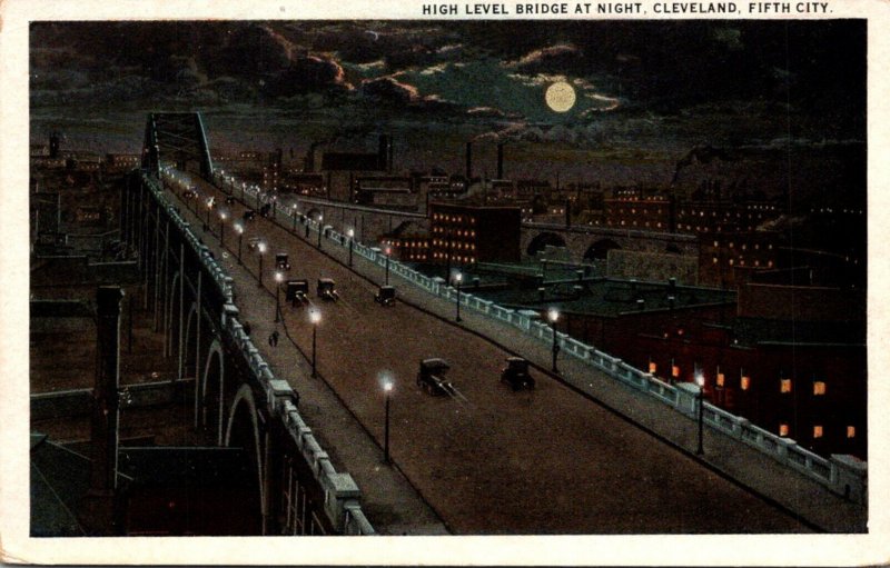 Ohio Clevelamd High Level Bridge At Night Curteich