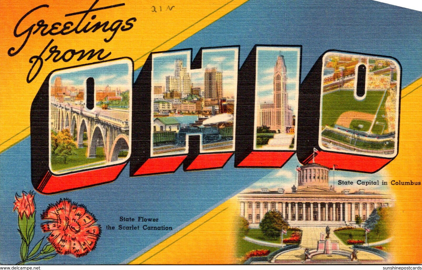 Ohio Greetings From The Buckeye State Large Letter Linen