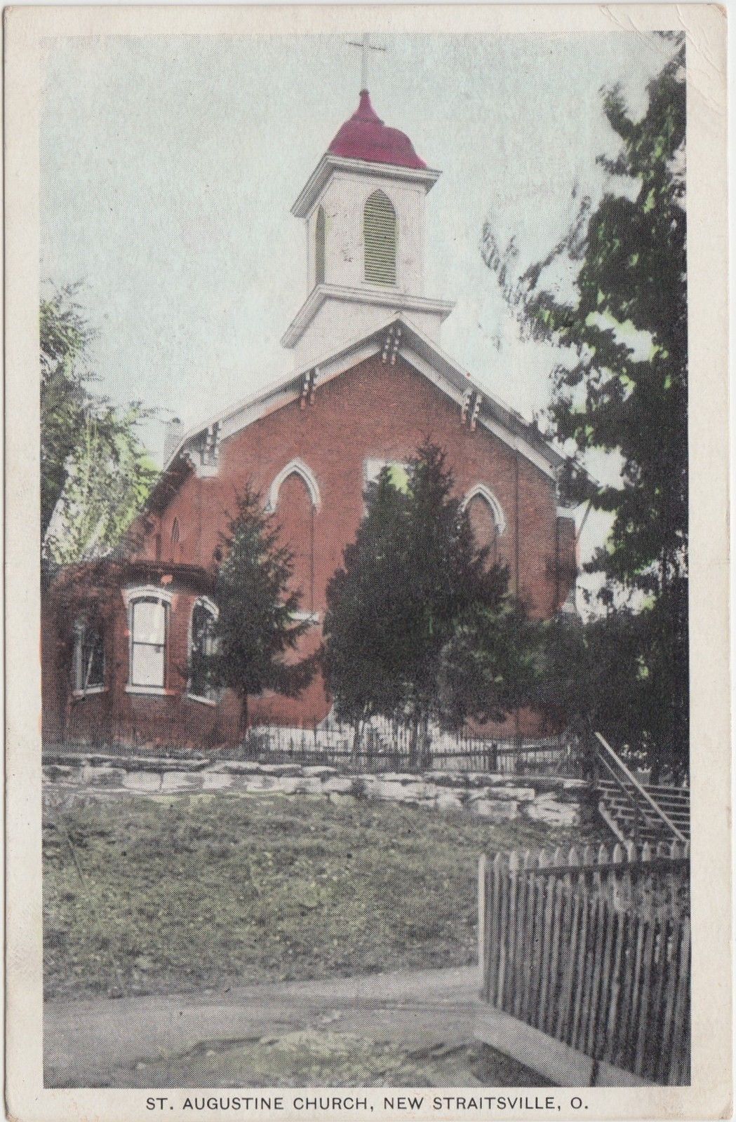 Ohio Postcard 1908 NEW STRAITSVILLE St Augustine Church Building