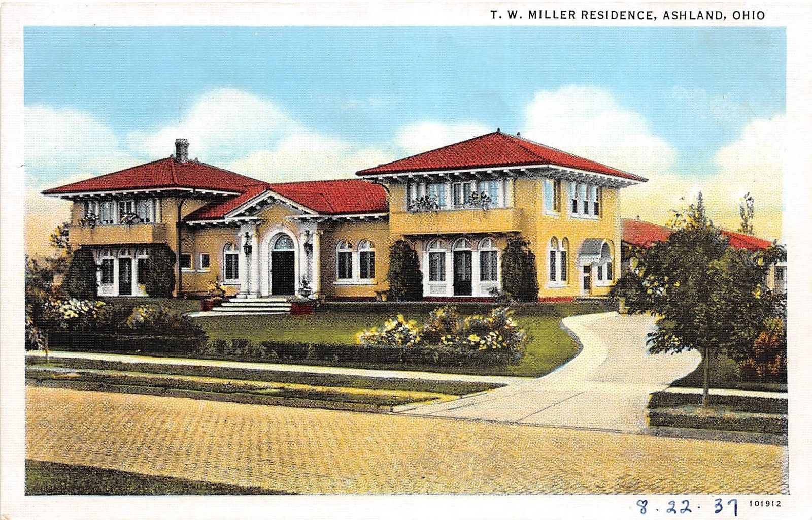 Ohio Postcard ASHLAND c1910 T.W. MILLER Residence Home