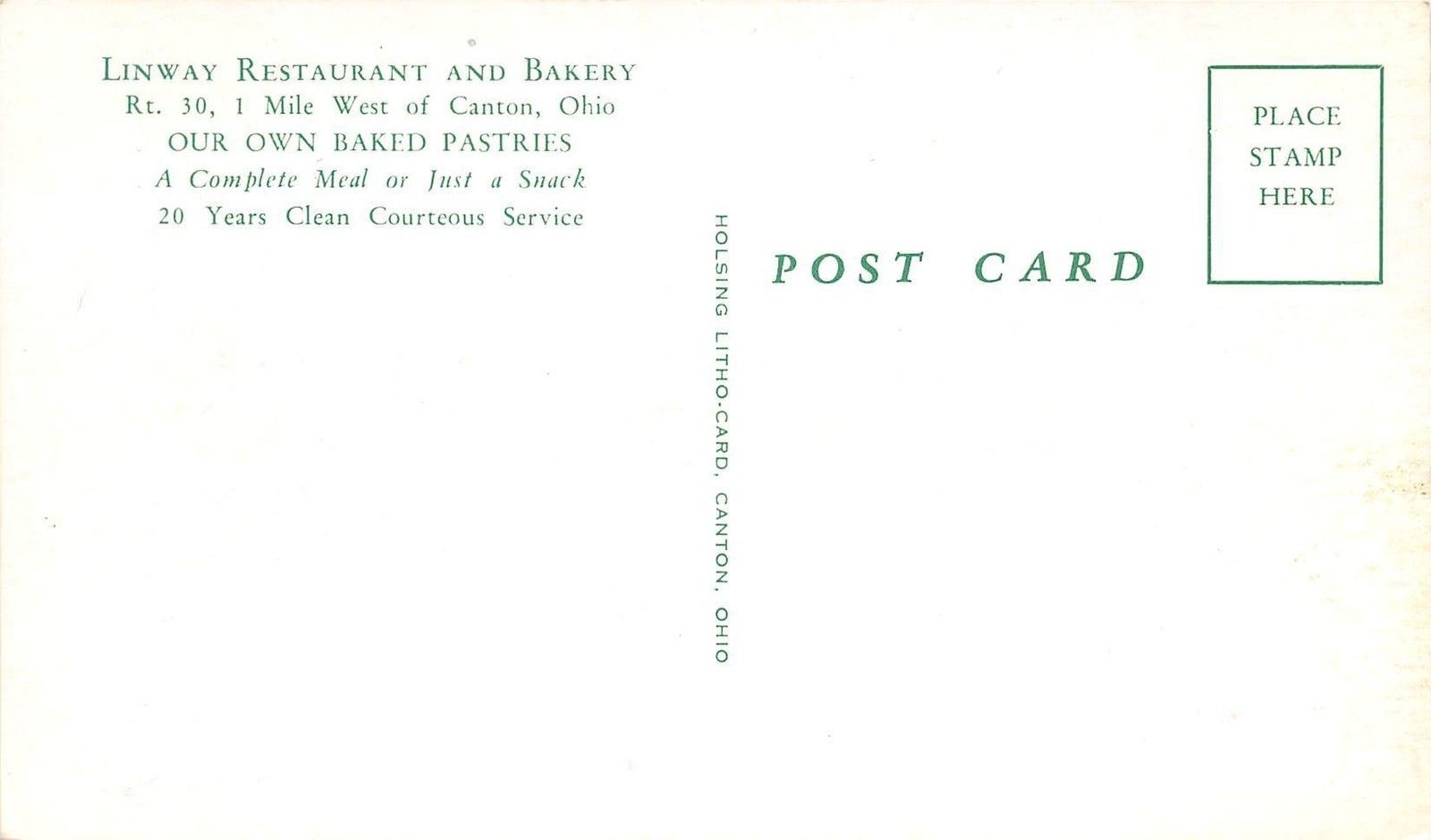 Ohio Postcard Chrome CANTON Linway Restuarant and Bakery Roadside