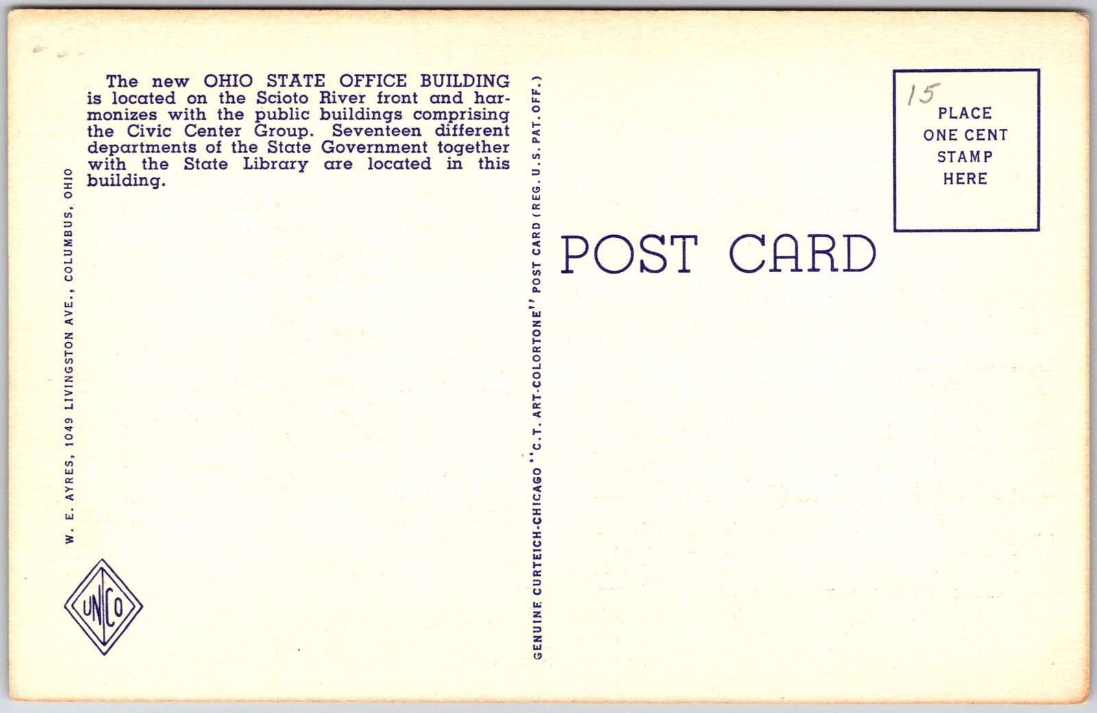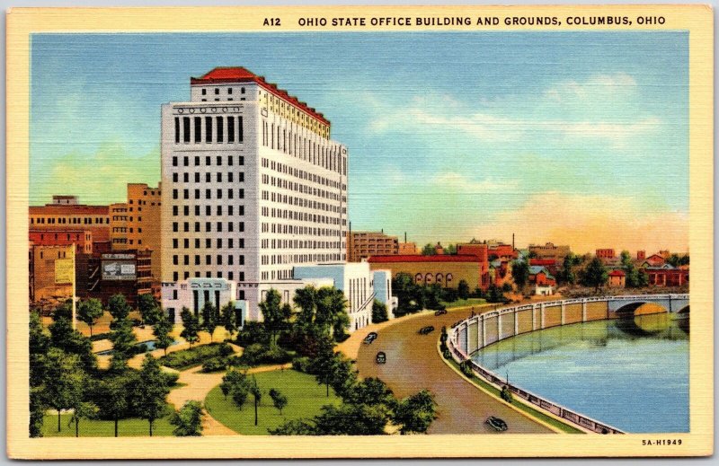 Ohio State Office Building & Grounds Columbus Ohio River Front Roadway Postcard