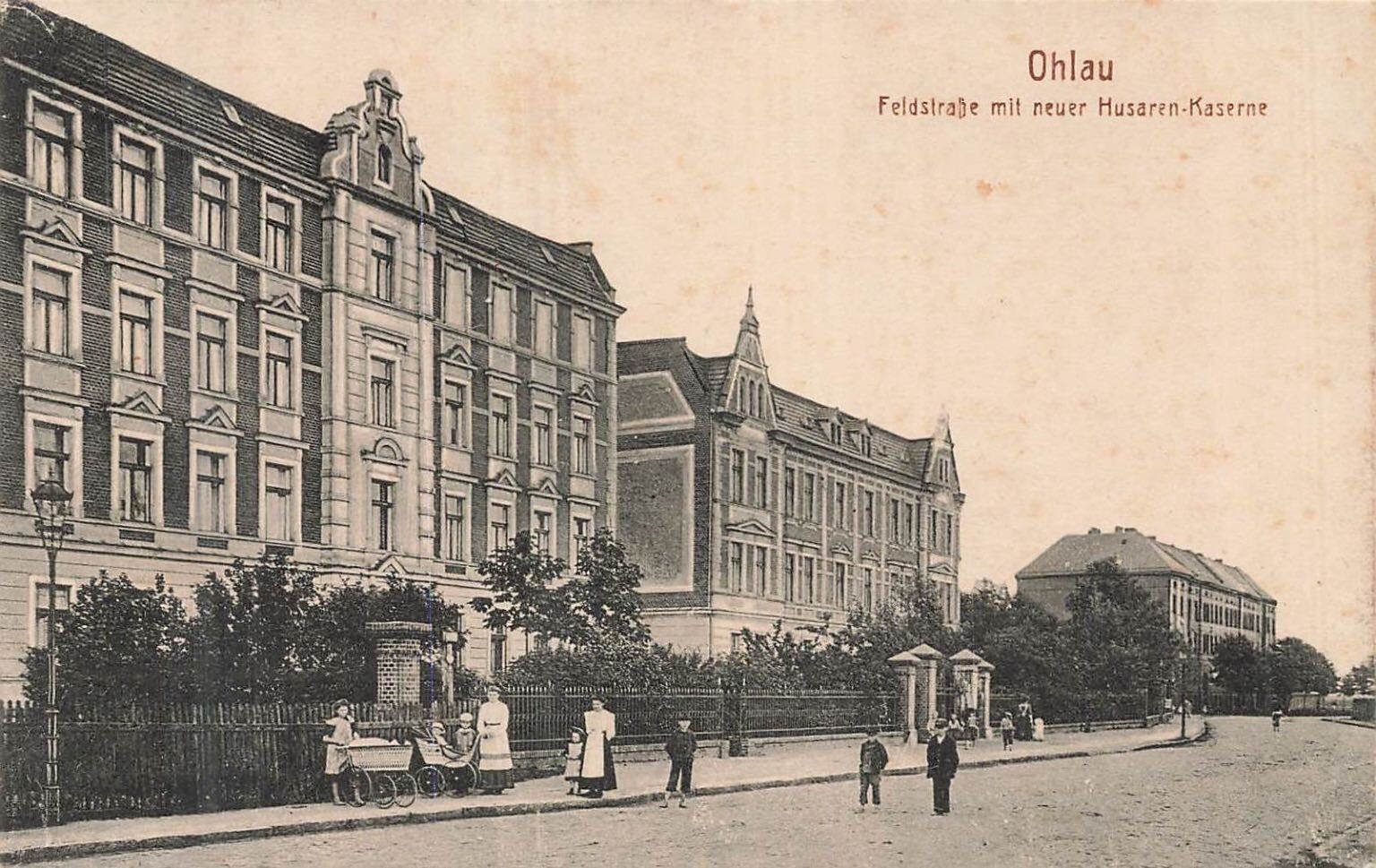 Ohlau Oława Poland~Feldstraße with New Hussar Barracks Postcard