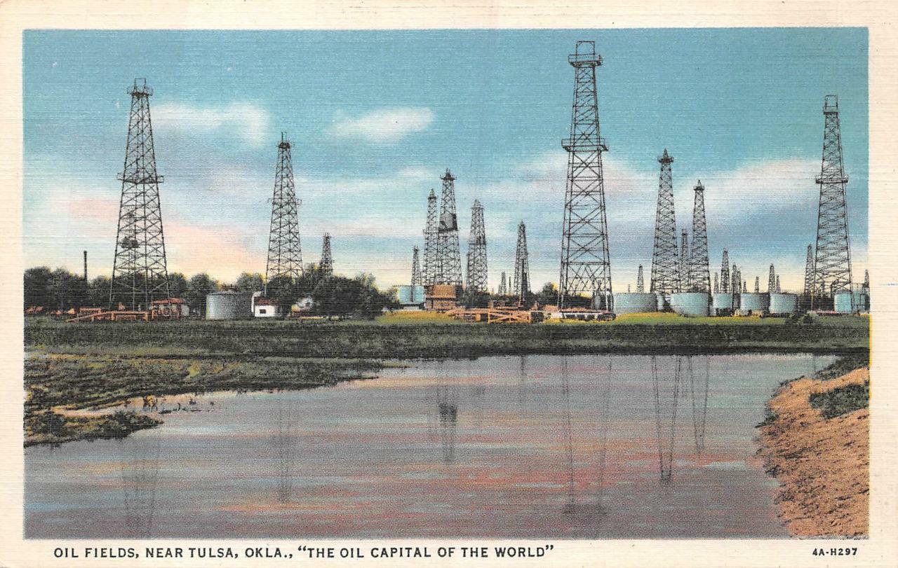 OIL FIELDS NEAR TULSA OKLAHOMA POSTCARD (c. 1940s)