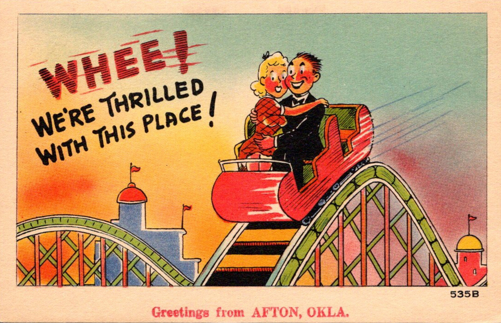 Oklahoma Greetings From Afton Couple On Roller Coaster
