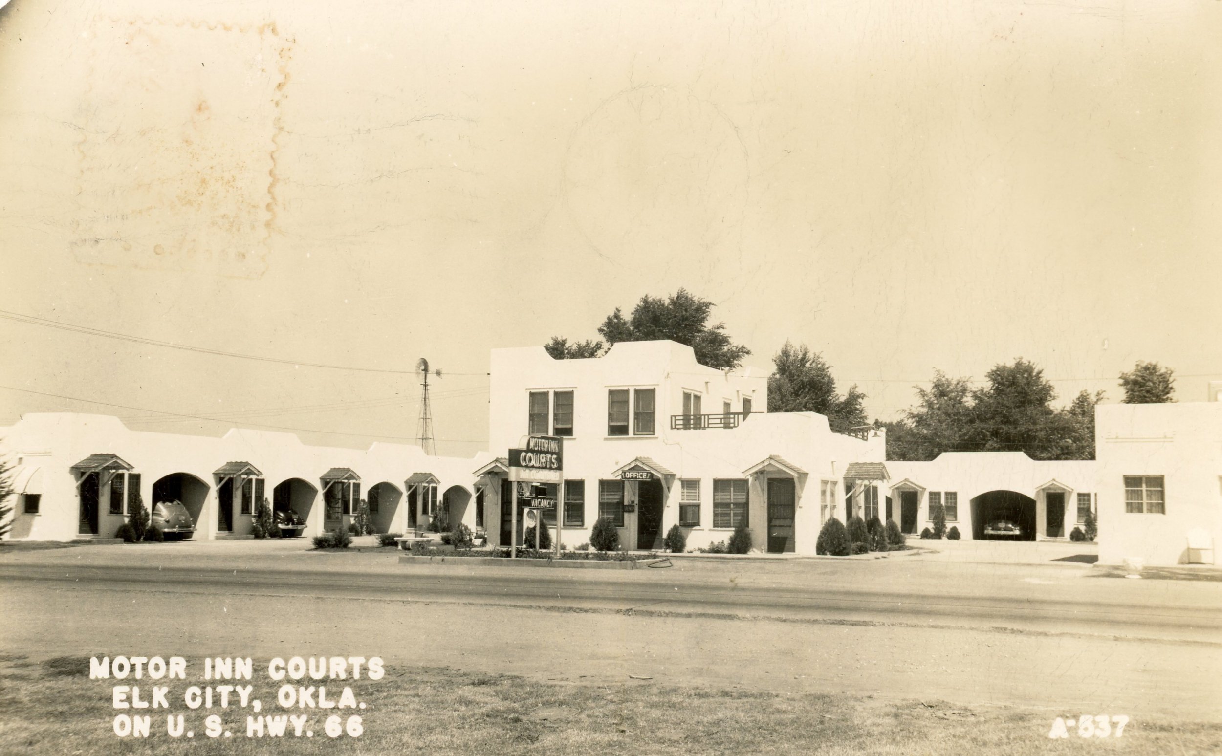 2 linen cards of landmarks in Lawton OK and a RPPC mailed in 1948 of the Motor Inn Court Elk City