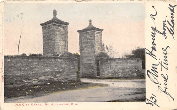Old City Gates St Augustine, Florida Postcard St Augustine FL Year date of postcard, or postal used / year used: 1906 Grade: 5 Size: R Old City Gates in St Augustine, Florida vintage postcard from our collect ... Read More