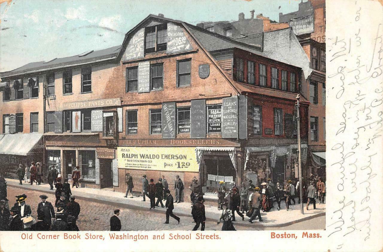 OLD CORNER BOOK STORE RALPH WALDO EMERSON BOSTON MASSACHUSETTS POSTCARD 1908