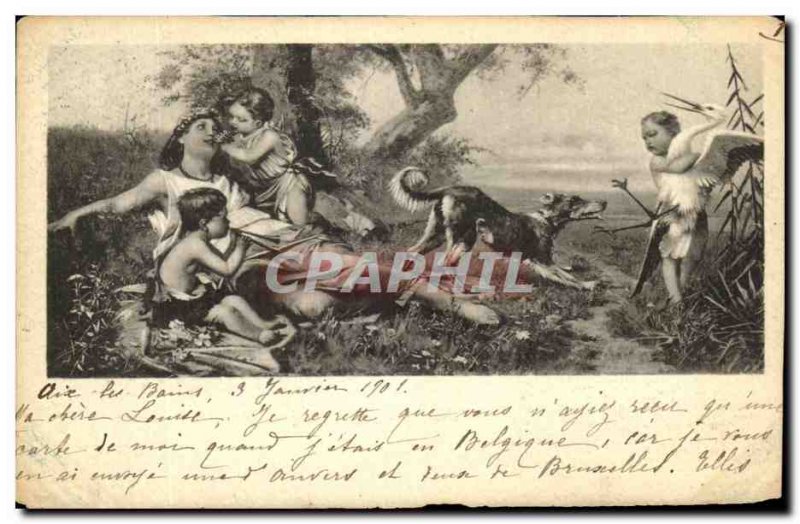 Old Dog Postcard Children Stork