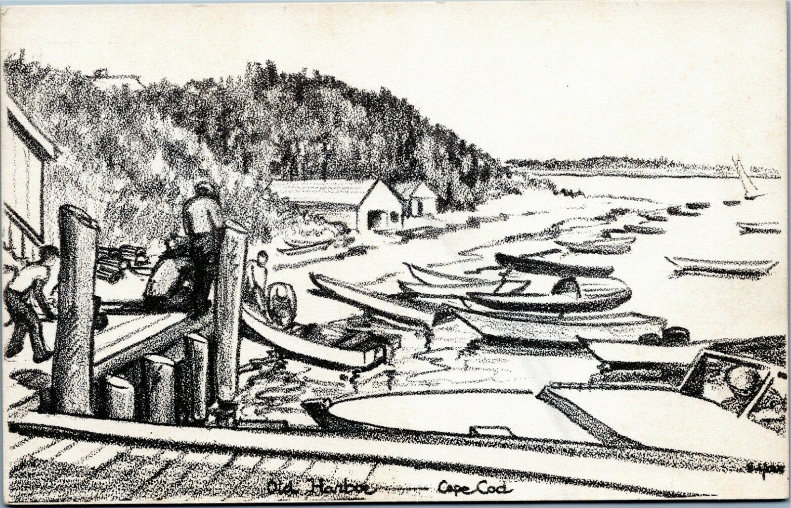 Old Harbor, Cape Cod Massachusetts drawing - artist E. Young